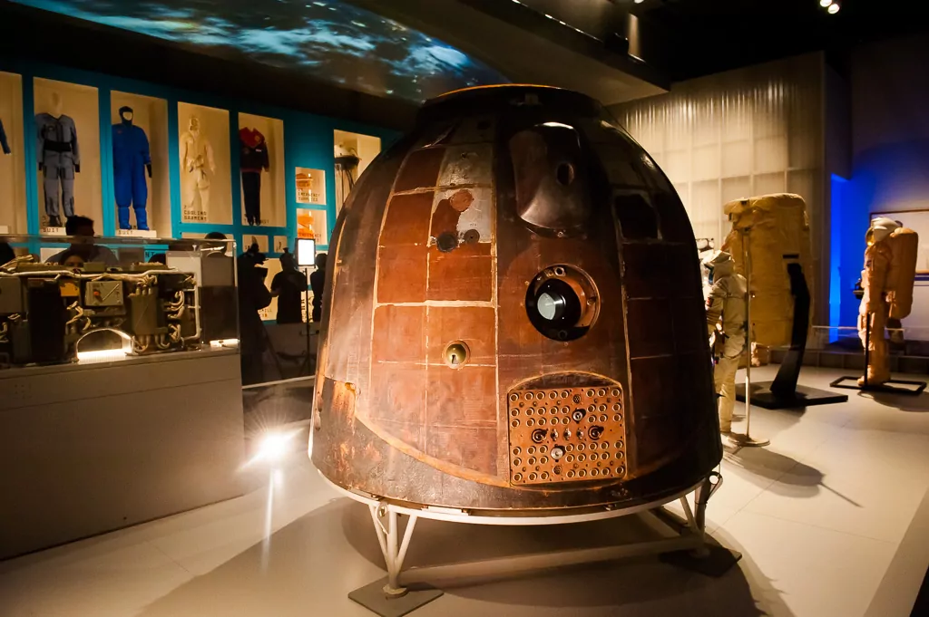 Совершенно невозможно, кстати, представить, как с этой задачей справились в этом году. Сегодня в залах музея, действительно, в полный рост стоят пятиметровый космический корабль, ракетный двигатель, капсулы «Восход» и «Восток». На космическом корабле «Восток-6» Терешкова выходила на орбиту Земли. На обшивке корабля можно увидеть повреждения, которые случились при приземлении (скорость движения аппарата в атмосфере — 27 тысяч км/ч). Сегодня Валентина Терешкова спокойно признается в том, о чем в советское время говорить было нельзя. Оборудование корабля «Восток» во время ее полета было запрограммировано неверно: «Вместо того, чтобы осуществить систему спуска на Землю, программа была заложена так, что орбита поднималась, и я вместо Земли улетала туда». Впрочем, ошибку быстро исправили. Вторая неприятность ждала космонавта при непосредственном приземлении: парашют нес ее не на прочную твердь, а в воду Алтайского озера. «Первая женщина-космонавт в мире, и надо же — упасть в воду!» — вспоминала на открытии выставки Терешкова свои переживания в тот момент. К счастью, обошлось. Ветер отнес ее на поляну, за сотни километров от предполагаемого курса, где космонавта сразу встретили местные жители.