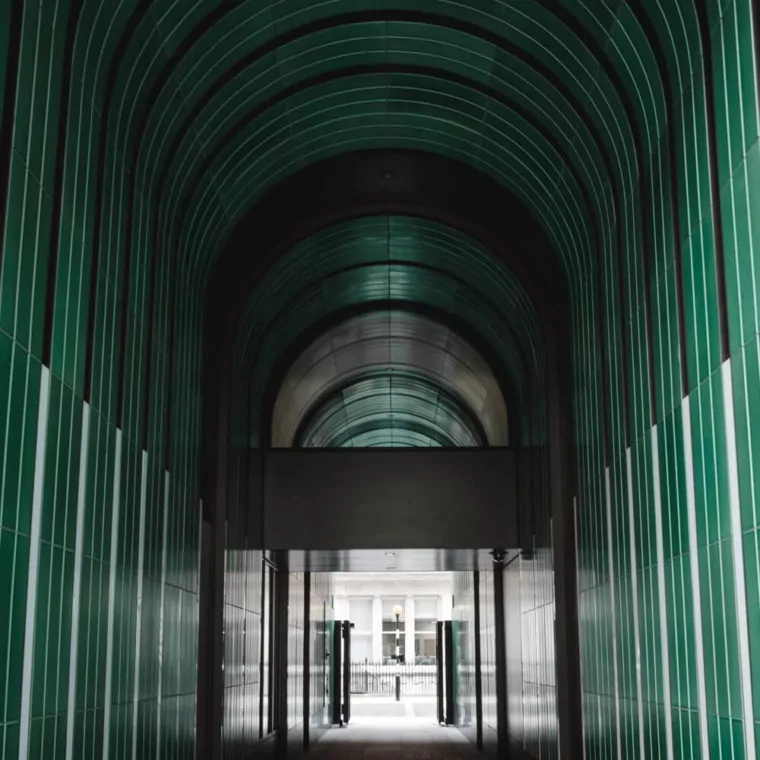 Еще один проход между улицами, только более современный. Любители геометричных пространств оценят прежде всего.