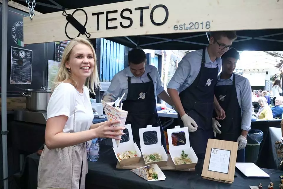 Этим летом в Лондоне на Brick Lane Market открылся стрит-фуд под русским названием Testo. Над ним работают двое лондонских студентов – Дмитрий Тарасенко из Украины и Борис Старченко, который родился в России.