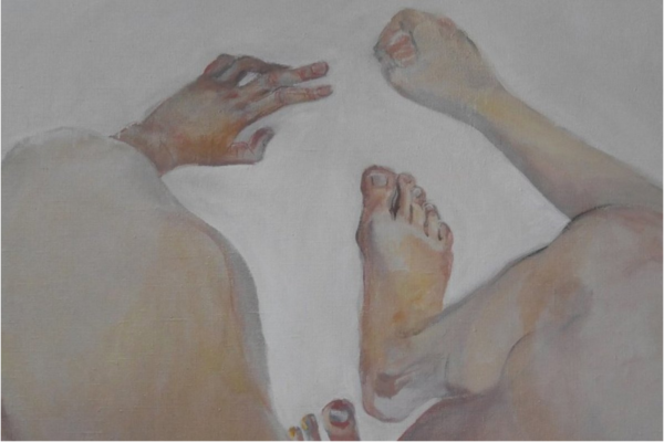 Алена Терешко, одна из моих любимых современных петербургских художниц. Я однажды придумала одну перфоративную работу, а оказалось, у Алены такая уже есть. Начала делать рисунки своего тела с перспективы собственного взгляда — потом вспомнила, что у Алены уже миллион похожих. Наши живописные языки очень разные, но видение мира, как мне кажется, может позволить мне назвать Алену своей единомышленницей.