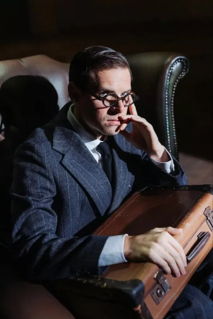 А в качестве этюда на тему страха, мы услышим монолог молодого Дмитрия Шостаковича в проникновенном исполнении Филиппа Авдеева. Потрясенный гибелью своего старшего друга и мэтра Всеволода Мейерхольда, он примеряет на себя его ситуацию, вспоминает все этапы травли, начатые статьей «Сумбур вместо музыки», опубликованной в «Правде». Жизнь в ожидании ареста, жизнь со списком тюремного минимума и собранным фибровый чемоданом на всякий случай для застенка. Но, может быть, единственный способ переселить этот ужас и справиться с «морем бед» — это его музыка, которая звучит в спектакле (соната для фортепьяно N2 си минор, opus 64).