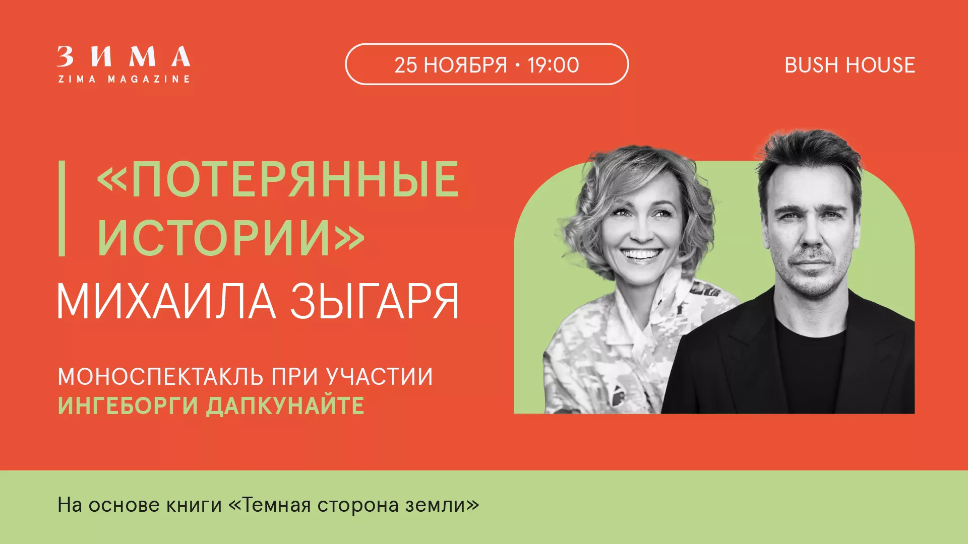 «Зима» приглашает на моноспектакль по новой книге Михаила Зыгаря «Темная сторона земли», а также на ее презентацию и открытую дискуссию с автором. В постановке примет участие актриса Ингеборга Дапкунайте.