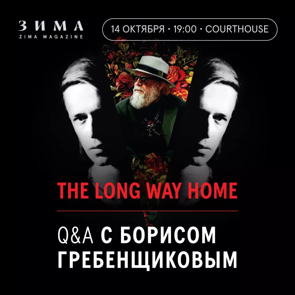 «Зима» приглашает на показ нового документального фильма The Long Way Home, рассказывающего о легендарном путешествии Бориса Гребенщикова, бессменного лидера группы «Аквариум» – на Запад. Режиссер картины — Майкл Аптед.
