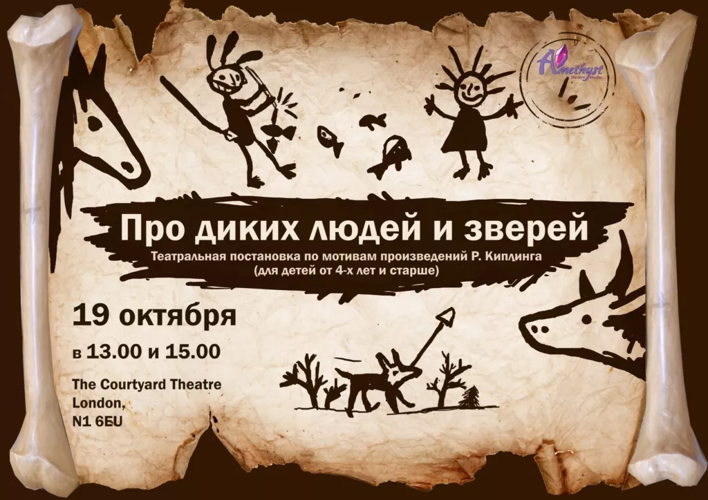 Театр Amethyst приглашает детей и родителей на познавательный и весёлый детский спектакль по мотивам произведений Д. Р. Киплинга. — «Про диких людей и зверей».