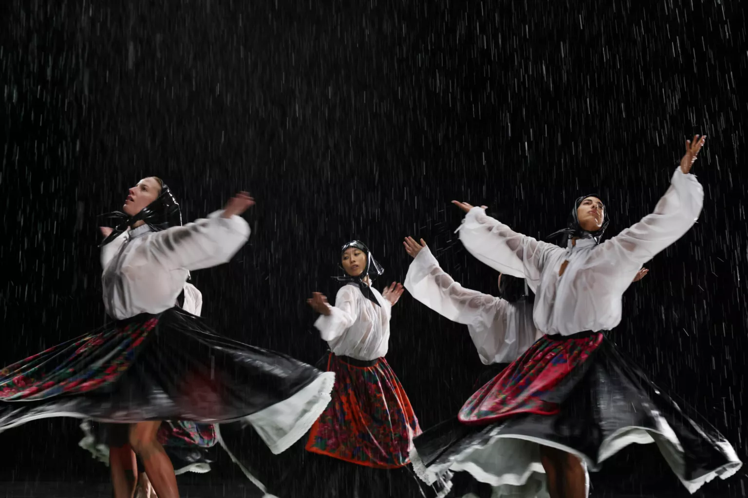 Попадая в огромное пространство студии Aviva, зритель «Балканского эротического эпоса» должен быть готов раствориться в интенсивном потоке смыслов и эмоций — четыре часа, никаких телефонов и полное опустошение под конец. В тринадцати сценах перформеры, музыканты и танцовщики ведут непрерывный рассказ о жизни и смерти. Всё — через тело. Обнажаемое и обнаженное. Из закутка в закуток возникают гротескные образы. Вот сцена похорон бессменного лидера коммунистической Югославии Тито, в ней, например, убитые горем вдовы целуются со скелетами. А вот пятиметровые фаллосы возвышаются над лужайкой, орошаемой мужчинами-перформерами, непрерывно и ритмично двигающими бедрами. Вот женщины в борьбе за будущий урожай обращаются к небу, задирая снова и снова юбки — и небо откликается, начинается дождь. Присутствует здесь и автор. Она то и дело возникает в пространстве кафе Kafana, пускаясь в какой-то момент в нежный и чувственный танец.