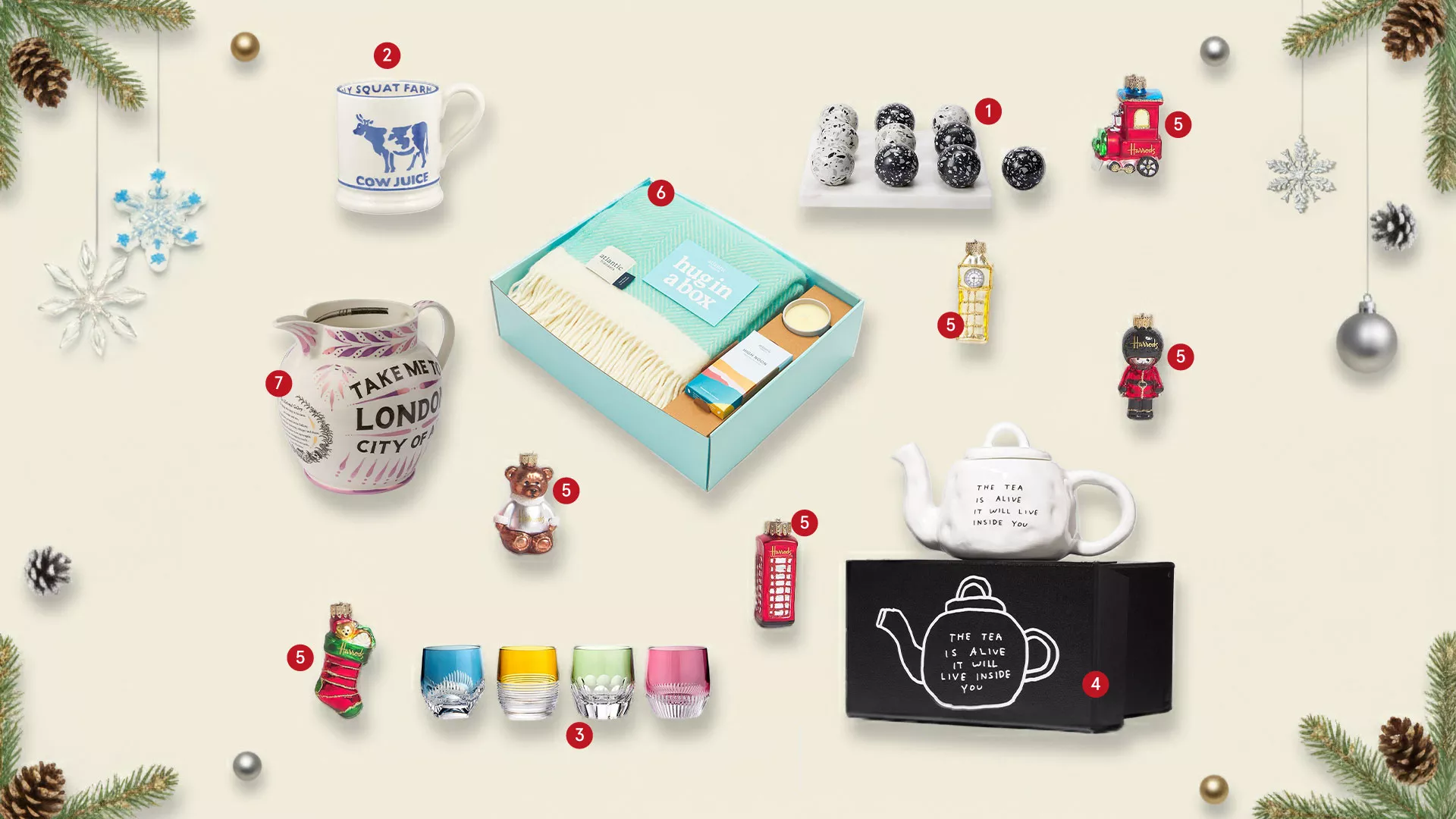 Fortnum & Mason — главный гастрономический символ Пикадилли и британского Рождества. Их подарочные корзины собираются вручную: от традиционных сладостей и чайных смесей до редких вин и деликатесов из разных графств. Персонализированные боксы с шампанским и шоколадом позволяют добавить инициалы получателя. The Christmas Treat Hamper — классика с миндальными пирогами, джемами, печеньем и пудингом, упакованная в плетёную корзину, которую летом можно будет использовать для пикников.