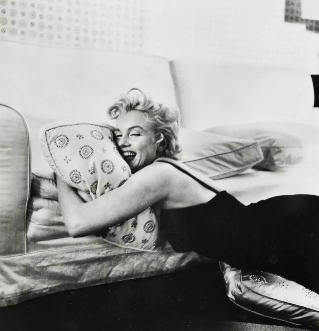 А Мерилин Монро, которая опоздала на полтора часа, резвится у Битона в кадре как пятилетнее дитя. То прыгает на диван, обнимая подушку, то берет в рот стебель, то затягивается ромашкой, словно сигаретой. Очень задорная тогда получилась фотосессия. Хотя легко представить, как все заканчивается беспричинными слезами. «…Притворная сирена, — читаем в дневнике Битона, — бесхитростная, как рейнская дева, и невинная, как лунатичка, разгуливающая ночью по коридорам замка с закрытыми глазами».