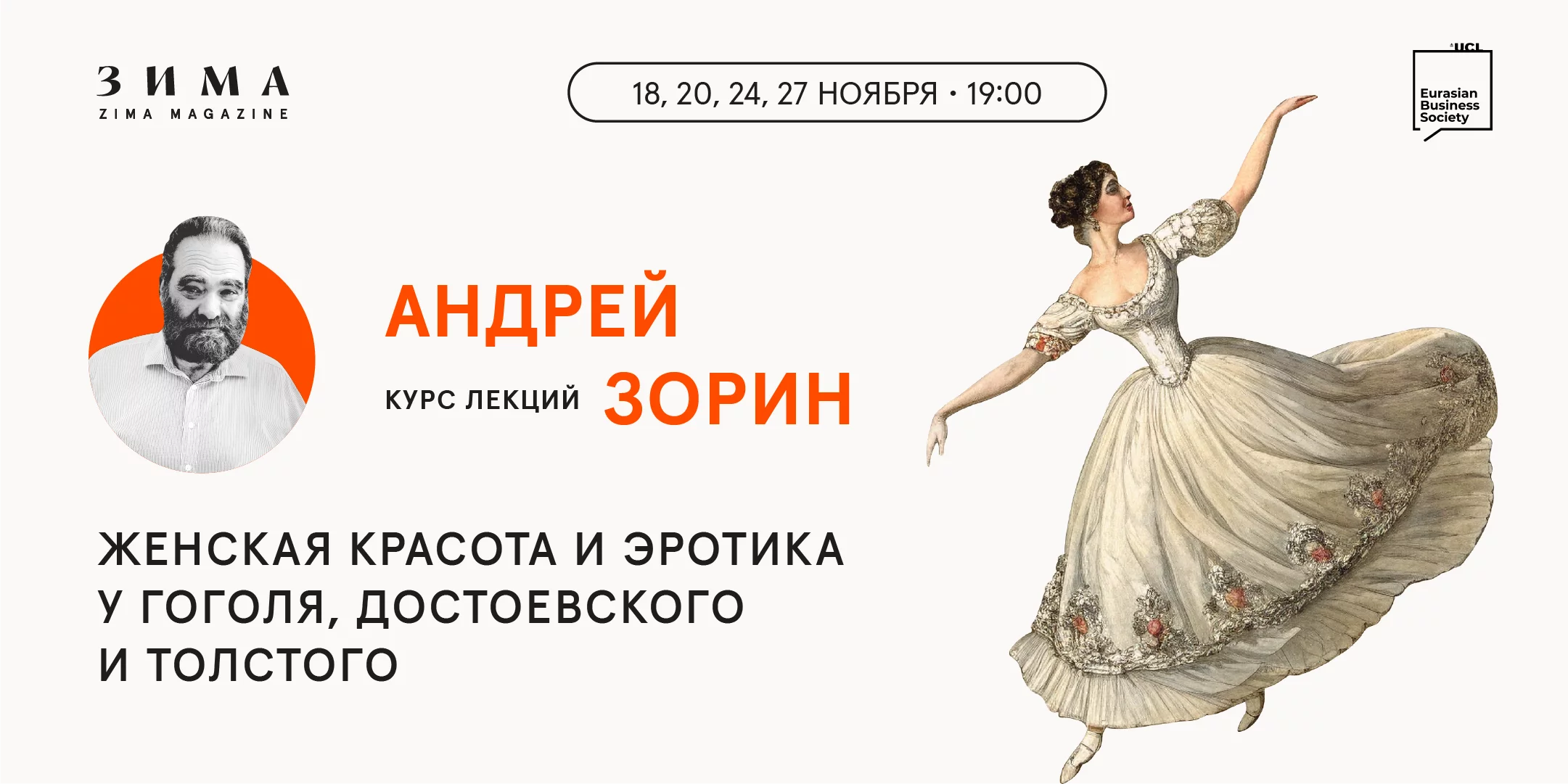 «Зима» приглашает на курс лекций известного филолога, культуролога и профессора Оксфордского университета Андрея Зорина. Впервые он представит свой авторский цикл, посвященный теме романтической любви и женской красоты в русской литературе XIX века.