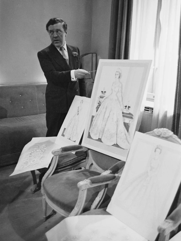 После коронации 1953 года гардероб Елизаветы становится частью государственной символики. Дизайнер Norman Hartnell превращается в её главного союзника — он создаёт легендарное белое платье с вышивкой, где каждая деталь олицетворяла страны Содружества: тут и канадский клён, и южно-африканская протея, и индийский лотос. В эти годы рождается «код монархии»: закрытый вырез, длина до середины икры, перчатки, аккуратная шляпа. Из этого кроя вырастет вся эстетика королевской моды. В экспозиции можно будет увидеть платье Hartnell 1957 года, надетое на банкет с Эйзенхауэром, — шёлк, жемчужные стразы, идеально сбалансированный объём юбки.