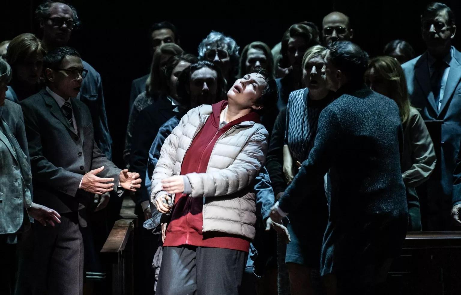 Казалось бы, свойственная режиссеру провокативность отступает в этом спектакле на второй план перед подлинной историей затравленного, замученного человека. Но не тут-то было — иначе это был бы не Черняков. В конце он все-таки выносит свой вердикт в стиле «гори оно все ярким пламенем». Его герои не умирают и не сгорают на костре просто так — они превращают это в настоящее шоу, которое касается каждого. Поэтому в этой постановке появляется одна из самых эффектных сцен в современной опере, которую можно сравнить по месседжу и по эффекту с «Бесславными ублюдками» Квентина Тарантино. Не случайно и Дрейер сам сравнивал свое кино с «Броненосцем Потёмкин» – здесь тоже разворачивается массовый бой. И только после такого огненного шоу народ безмолвствует: насилие и пытки прекращаются, героиню оставляют в покое. Но вместе с ней умирает и весь зал, ведь это суд над всеми нами — здесь и сейчас. Заседание окончено, покиньте помещение!
