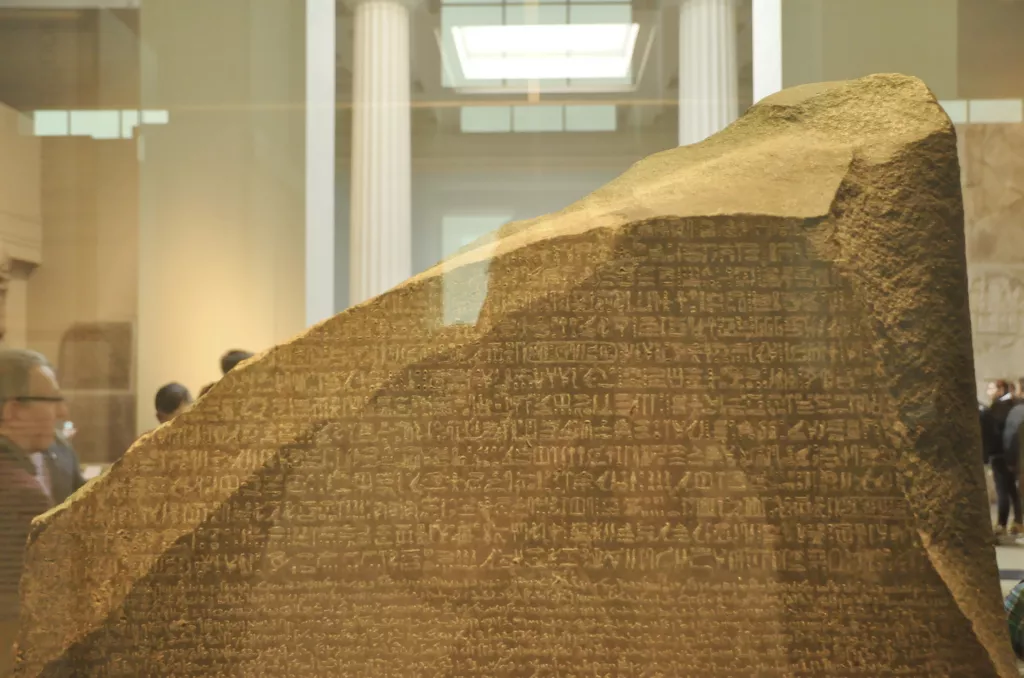 Жемчужина этой коллекции — Розеттский камень, ключ к дешифровке древнеегипетского языка. Наличием этого артефакта в музее мы обязаны проигрышу войск Наполеона британцам, после чего Жан-Франсуа Шампольон в 1822 году, спустя 15 лет непрерывной работы, смог расшифровать иероглифы. Это открыло для человечества возможность читать древние тексты и понимать историю цивилизации.