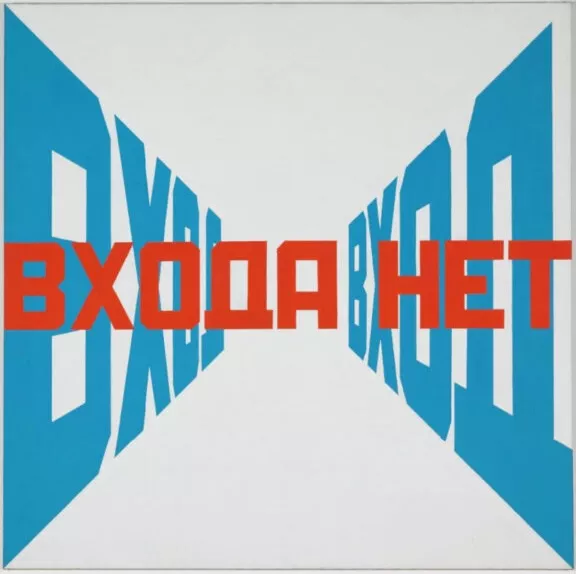 Написанное с двух сторон слово «ВХОД» симметрично уходит в глубину картины и перечеркивается красной надписью «ВХОДА НЕТ». Булатов говорил, что замысел работы состоял в разделении социального пространства несвободы, ассоциированного с запретом на вход, и пространством искусства как пути к творческой свободе. Поверхность картины устанавливает границу, которую мы не должны пересекать, но пространство по ту сторону границы ей не принадлежит. Этот же прием использовал художник в другой знаменитой работе «Слава КПСС».