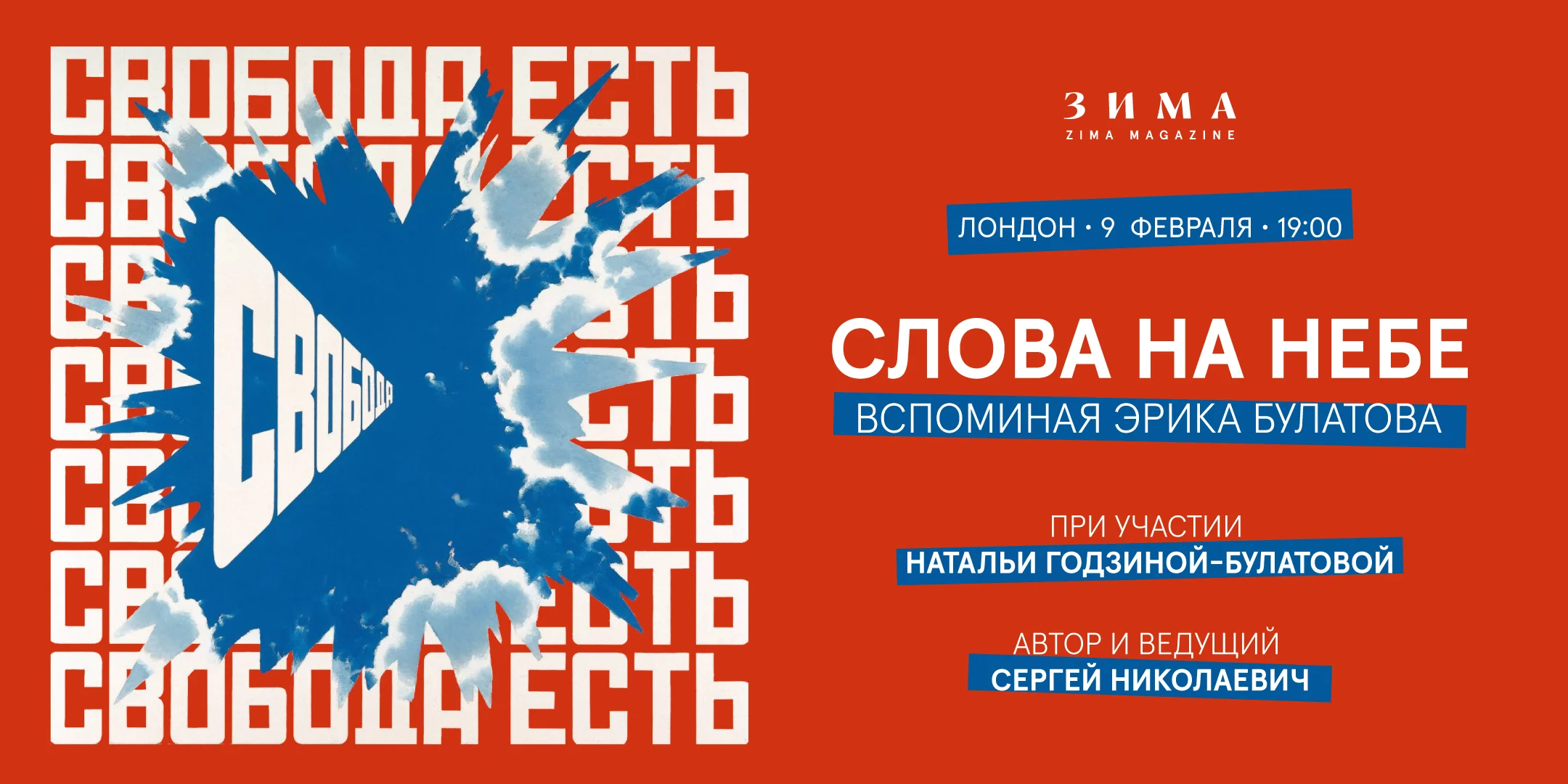 Обо всем этом предстоит откровенный разговор с музой, женой и главной хранительницей наследия художника Натальей Годзиной-Булатовой. На вечере будут продемонстрированы редкие кадры из семейного архива, эскизы, рисунки, фотографии. К беседе также присоединятся известные коллекционеры и владельцы знаковых работ Булатова — Игорь Цуканов и Алекс Лахман. Вместе они поговорят о творчестве мастера и поделятся воспоминаниями о личных встречах с ним. Автор и ведущий вечера – Сергей Николаевич, главный редактор журнала «Зима».