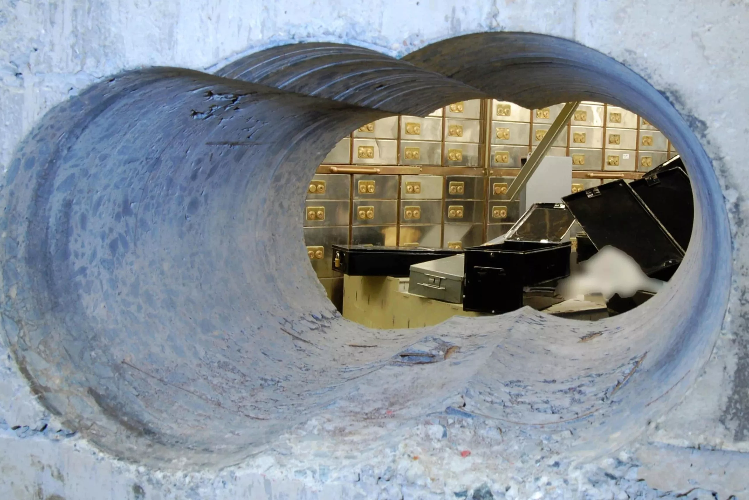 Первая попытка оказалась неудачной и показала, что даже тщательная подготовка не спасает от сюрпризов. Грабители всю ночь сверлили бетонную стену толщиной около 50 сантиметров, но, пробившись сквозь нее, обнаружили металлическую решетку, о которой не знали. К утру, уставшие и явно не рассчитавшие силы, они были вынуждены уйти ни с чем.