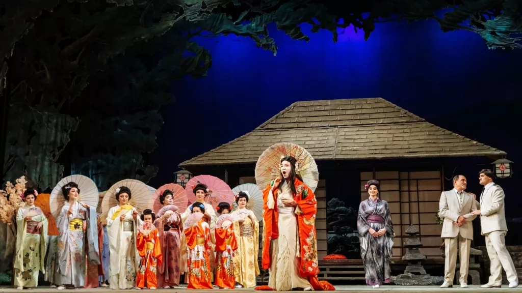 Юная гейша Чио-Чио-сан (Баттерфляй) влюбляется в американского офицера Пинкертона, который воспринимает их союз как мимолетное развлечение. Музыкально спектакль выстроен вокруг знаменитых арий — прежде всего Un bel dì vedremo, в которой героиня с надеждой ждет возвращения Пинкертона. Перед нами — классическая, максимально «традиционная» версия оперы Пуччини японские костюмы, подчеркнутая стилизация.