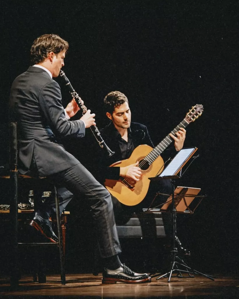 Редкая встреча двух суперзвезд академической сцены: черногорского гитариста Милоша Карадаглича и австрийского кларнетиста Андреаса Оттензамера. Программа выстроена как путешествие сквозь эпохи — от ренессансной лирики Джона Доуленда до страстного танго Пиаццолы. Идея — исследовать, как менялся музыкальный язык каждого столетия.