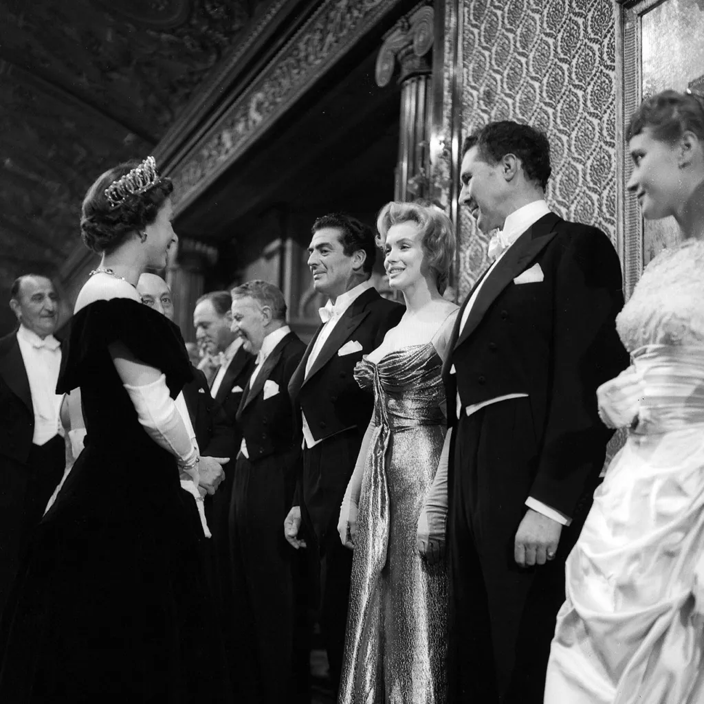 Так на одном из стендов представлено черное корсетное платье — воплощение роскоши и утонченности. В этом наряде королева не только не померкла, но, по мнению многих, даже затмила свою легендарную ровесницу — икону Голливуда Мэрилин Монро. Их знаменитая встреча состоялась в 1956 году на лондонской премьере фильма «Битва у Ла-Платы». Не скованная придворным протоколом, Монро — в то время объект желания доброй половины планеты — выбрала облегающее золотое платье с провокационным декольте. Однако королева Великобритании ничуть не уступила ей в эффектности: силуэтный наряд, оголенные плечи без намека на пошлость, изумрудные украшения и бриллиантовая тиара — это был выход роскошной женщины.